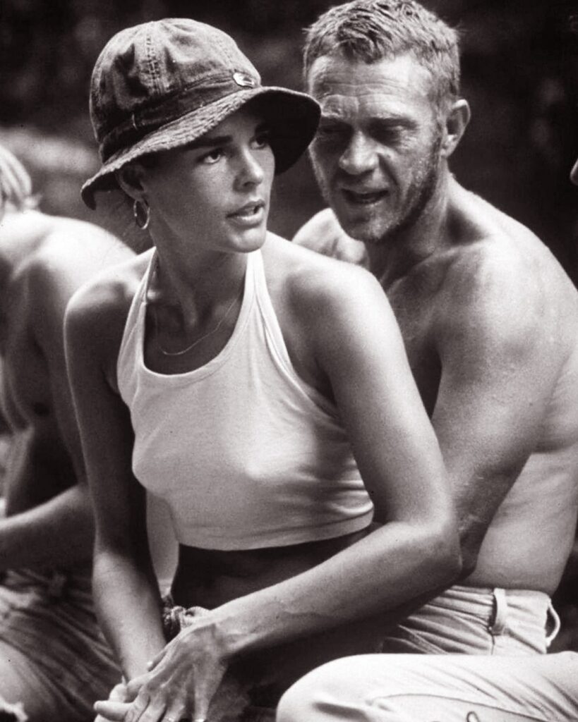 Although MacGraw briefly appeared with McQueen at public events, one of the most famous images associated with their time together comes from the set of Papillon (1973) — even though MacGraw did not appear in the film and was not part of the official cast.
