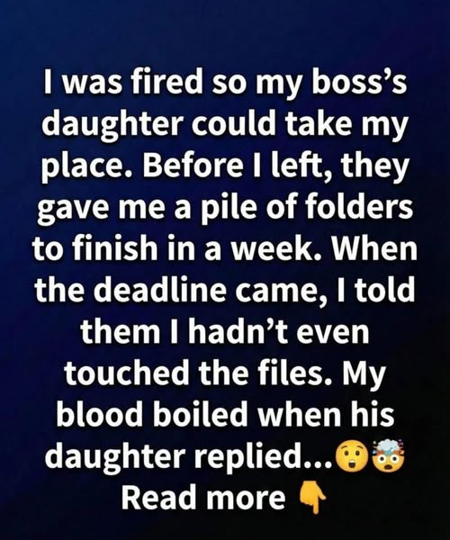 When Friday arrived, he returned to the office with the folders still untouched. Calmly, he explained to his manager that he had not finished the reports and believed the new employee should take responsibility for them. To his surprise, the manager’s daughter stepped forward and said she had already completed the work herself.