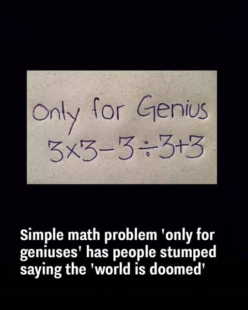 In the comments someone walked through the whole thing pretty clearly and they said: “To solve the mathematical equation correctly, we use the order of operations (PEMDAS/BODMAS: Parentheses/Brackets, Exponents/Orders, Multiplication and Division (from left to right), Addition and Subtraction (from left to right)). Here are the steps: 1. Perform multiplication and division first: 3 x 3 = 9 and 3 / 3 = 1 2. Substitute the results back into the equation: 9 – 1 + 3. 3. Perform addition and subtraction in sequence: 9 – 1 = 8, 8 + 3 = 11. So, the solution is= 11.”