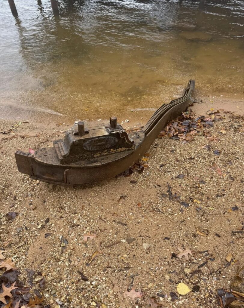 While excavating the Coosa River, researchers recently uncovered a rare find: a late-1800s piano harp. Buried in sand, its shape and design clearly mark it as part of an early upright piano. Experts believe it was likely discarded before the area was flooded in the 1960s to create a reservoir.