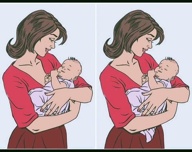 Puzzles don’t always have to be complex to be tricky. Sometimes, the most powerful test of observation is a single, tiny detail. Today’s visual challenge features a loving mother holding her baby in two nearly identical illustrations. But only one thing is different—can you spot it?