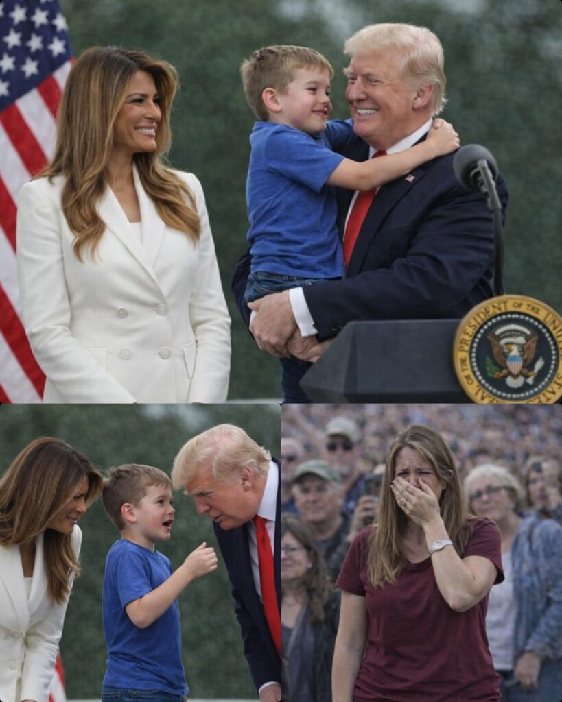 Both of them lowered themselves to the boy’s height, removing the distance that podiums and titles create. Trump leaned in and whispered softly, words meant only for the child.