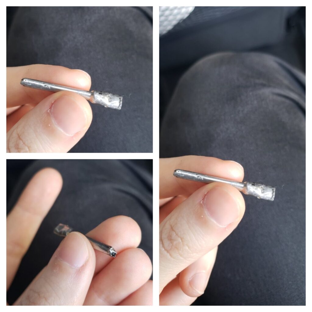 While less common, a metal valve stem core or part of it can detach and end up on the road. This hollow piece, though small, can cause tire damage under the right conditions.