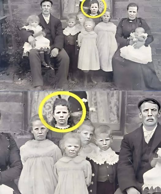 On this image, covered in dust and marked by time, a large family is posed in front of a brick wall. At first glance, everything seemed normal—the father wears a flat cap, the mother holds a baby, and the four children are neatly dressed. But what was later revealed stunned the entire world.