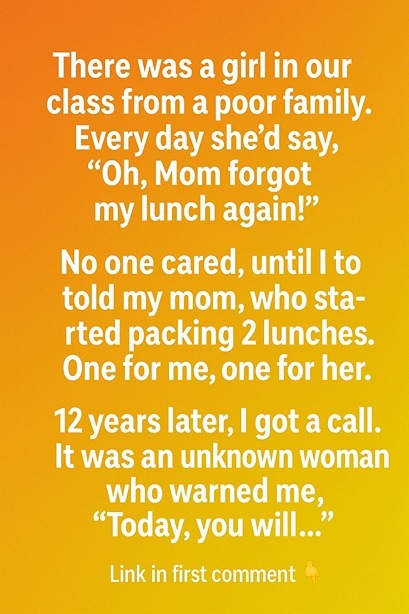 Then middle school came, and our paths split. Different classes, different circles, different worlds. By high school, we were barely waving acquaintances. Life did what life does — it moved on. College came, then jobs, then the blur of early adulthood. But sometimes, out of nowhere, I’d think of her. I’d picture her sitting at that elementary school desk, smiling shyly over a shared lunch, and I’d wonder where she ended up. If she was okay. If she’d ever stopped pretending her mom “forgot.”