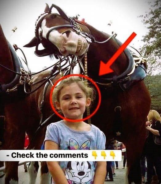 According to Time Magazine, the photograph was initially uploaded to the Reddit platform – and it caused a sensation. This girl was enjoying a beautiful day in a festive setting, spending time with her family alongside the Clydesdale horses that galloped as if ready for a parade.