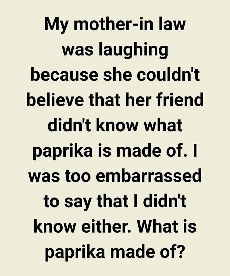 A simple afternoon of cooking turned unexpectedly memorable when a question about paprika sparked a conversation full of humor, surprise, and discovery. While preparing ingredients for her mother-in-law’s cherished goulash recipe, the narrator casually wondered aloud what paprika was made from, admitting uncertainty about whether it came from a root, bark, or seed. The question, innocent and spontaneous, instantly transformed the kitchen atmosphere into one of warm laughter and revelation.