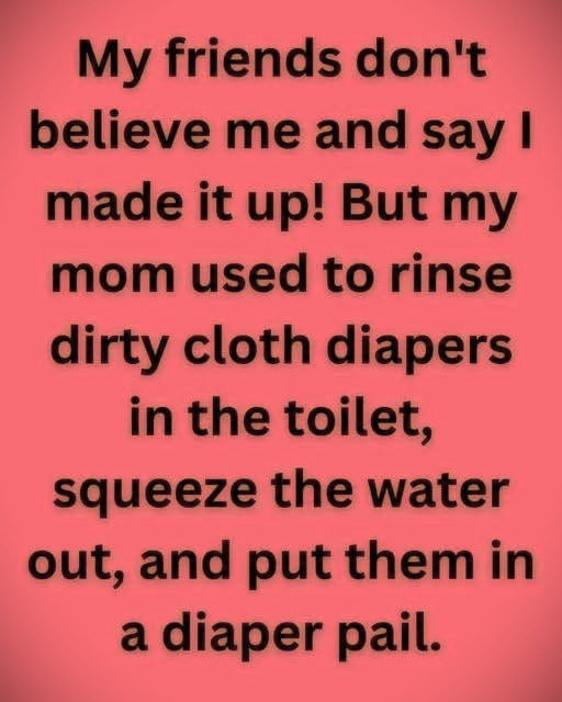 At the center of the memory is the writer’s mother and her daily ritual. When a diaper was soiled, she didn’t hesitate. She rinsed it directly in the toilet, wrung it out by hand, then dropped it into a diaper pail until laundry day. It was messy, repetitive, and tiring — yet she handled it with the ease and determination that defined so many parents of that era. What sounds shocking or unsanitary to contemporary ears was once completely normal.