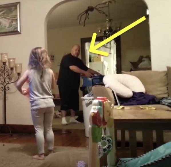 The baby giggles, and the dad turns to his daughter, asking: “Are you dancing?”